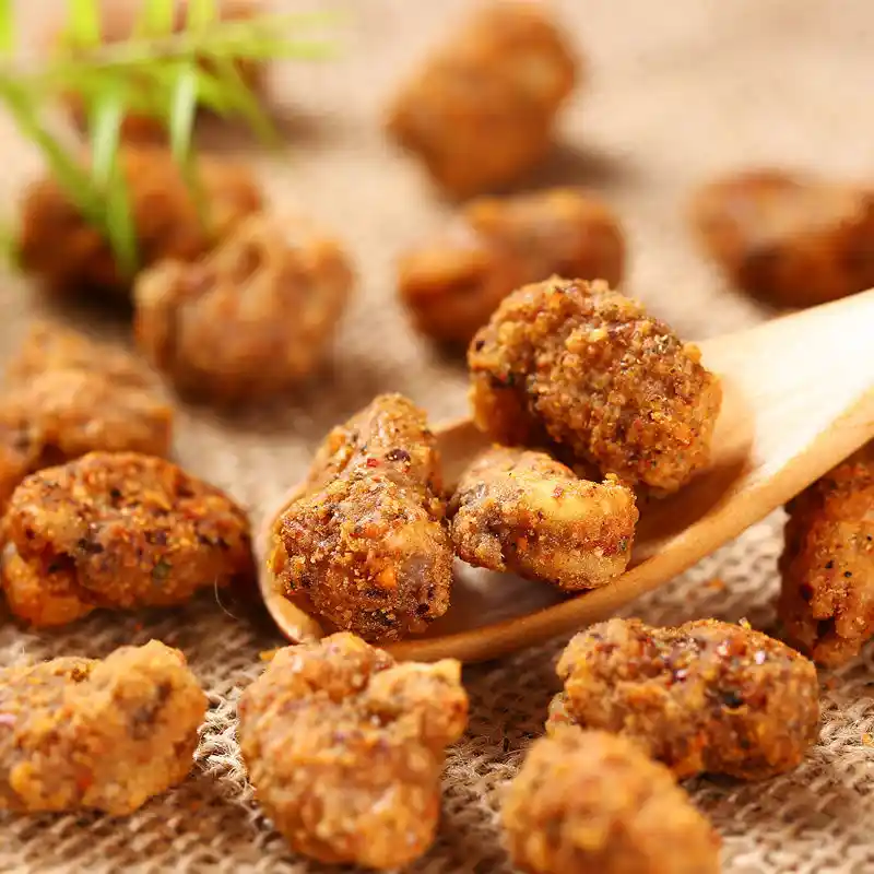 制作怪味胡豆,原料的选择是关键。精选颗粒饱满、大小均匀的高品质胡豆,确保每一颗都能在后续的制作过程中展现出好状态。这些胡豆在经过精心挑选后,需用清水浸泡,让其充分吸收水分,变得柔软,这样在油炸时才能达到外酥里脆的不错口感。油炸环节更是讲究,将浸泡好的胡豆沥干水分后,放入油温适中的油锅中,用中小火慢慢炸制。随着油温的作用,胡豆逐渐膨胀,表面变得金黄酥脆,散发出阵阵诱人的香气。这个过程需要严格把控火候和时间,火候过大,胡豆容易焦糊;火候过小,则无法达到酥脆的效果。