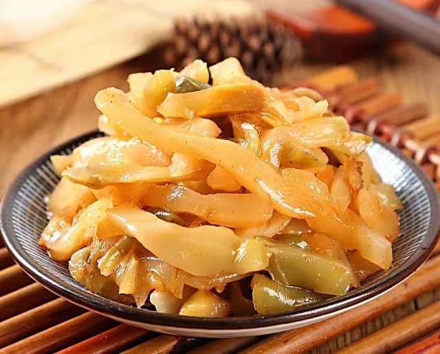 当你夹起一筷涪陵榨菜,脆嫩的口感瞬间在齿间迸发。咸淡适中的滋味中,透着辣椒的微辣、花椒的麻香,以及香料混合的独特香气,层次丰富,让人食欲大增。直接食用时,它是早餐配粥、馒头的不错搭档;作为烹饪调料,更是能为菜肴增色不少。无论是炒菜时加入几片提味,还是在煮汤快出锅时放入增添鲜味,涪陵榨菜都能让普通的家常菜焕发出别样的风味。比如经典的榨菜肉丝,鲜嫩的肉丝与脆爽的榨菜丝在锅中翻炒,香气四溢,下饭又开胃;榨菜蛋花汤,榨菜的咸香与鸡蛋的嫩滑相互交融,一碗下肚,暖胃又暖心。